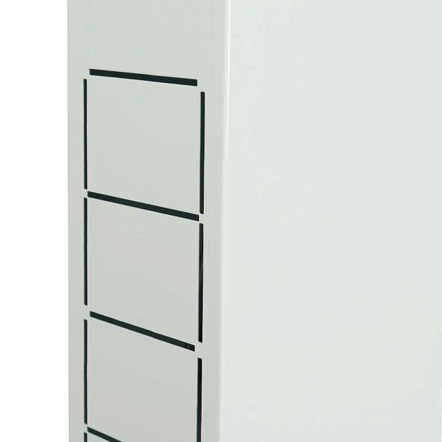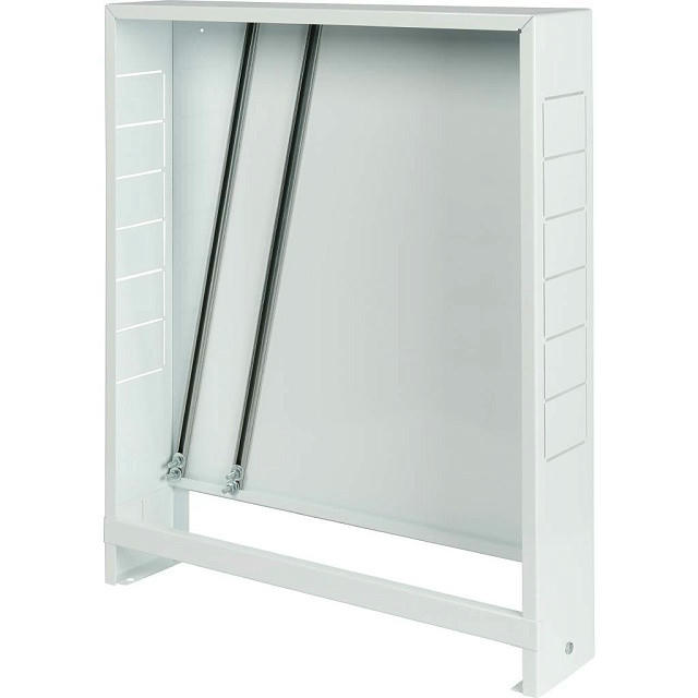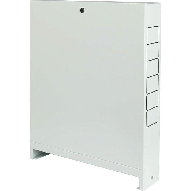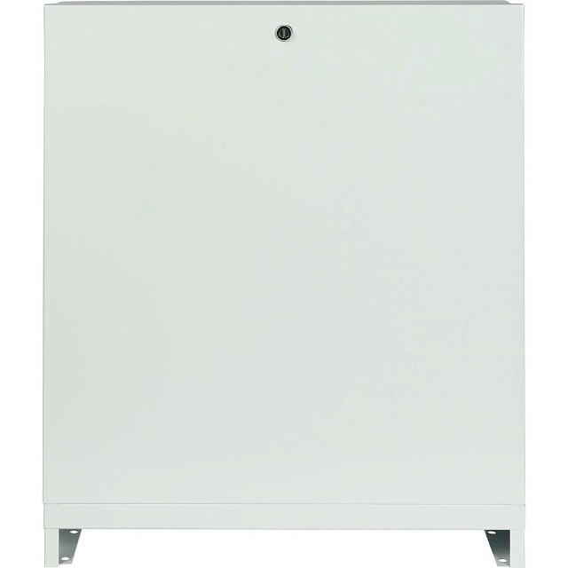Шкаф распределительный наружный 6-7 выхода ШРН-2 STOUT выполнен из оцинкованной стали, окрашен порошковой краской RAL 9016 с предварительным нанесением фосфатной пленки для придания антикоррозионных свойств изделию. В боковых стенках корпуса шкафа выполнена перфорация, сегменты которой удаляются в любом удобном месте для подсоединения трубопроводов. Шкаф имеет регулировку по высоте до 90 мм за счет выдвижных ножек и по глубине до 70 мм за счет выдвижных рамок. Внутри шкафа установлены универсальные профильные крепления, позволяющие располагать оборудование по всей высоте и ширине шкафа. Шкаф оснащен внутренним замком.