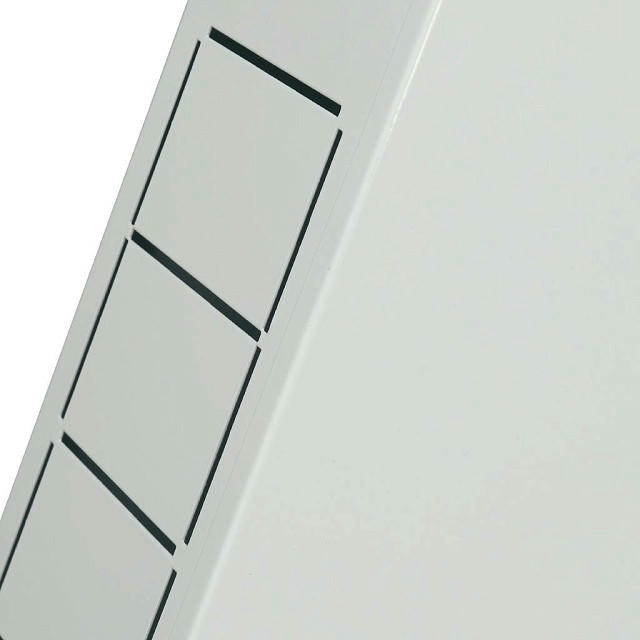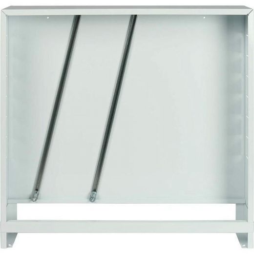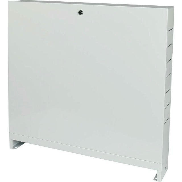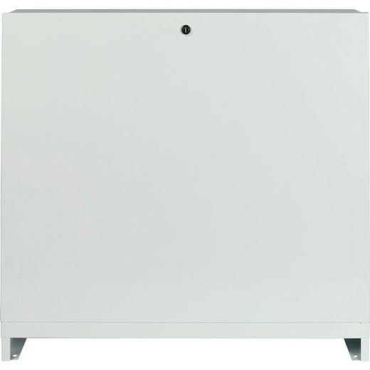 Шкаф распределительный наружный 8-10 выхода ШРН-3 STOUT выполнен из оцинкованной стали, окрашен порошковой краской RAL 9016 с предварительным нанесением фосфатной пленки для придания антикоррозионных свойств изделию. В боковых стенках корпуса шкафа выполнена перфорация, сегменты которой удаляются в любом удобном месте для подсоединения трубопроводов. Шкаф имеет регулировку по высоте до 90 мм за счет выдвижных ножек и по глубине до 70 мм за счет выдвижных рамок. Внутри шкафа установлены универсальные профильные крепления, позволяющие располагать оборудование по всей высоте и ширине шкафа. Шкаф оснащен внутренним замком.