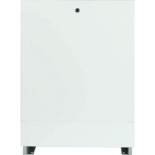 Шкаф распределительный встроенный 1-5 выхода ШРВ-1 STOUT предназначен для размещения в них распределительных коллекторов и коллекторных блоков для систем отопления. Шкаф выполнен из оцинкованной стали, окрашен порошковой краской RAL 9016 с предварительным нанесением фосфатной пленки для придания антикоррозионных свойств изделию. В боковых стенках корпуса шкафа выполнена перфорация, сегменты которой удаляются в любом удобном месте для подсоединения трубопроводов. Шкаф имеет регулировку по высоте до 40 мм за счет выдвижных ножек. Внутри шкафа установлены универсальные профильные крепления, позволяющие располагать оборудование по всей высоте и ширине шкафа. Шкаф оснащен внутренним замком.