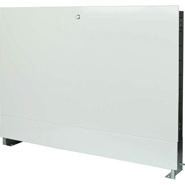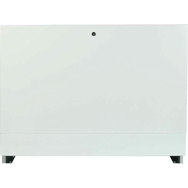 Шкаф распределительный встроенный 11-12 выхода ШРВ-4 STOUT предназначен для размещения в них распределительных коллекторов и коллекторных блоков для систем отопления. Шкаф выполнен из оцинкованной стали, окрашен порошковой краской RAL 9016 с предварительным нанесением фосфатной пленки для придания антикоррозионных свойств изделию. В боковых стенках корпуса шкафа выполнена перфорация, сегменты которой удаляются в любом удобном месте для подсоединения трубопроводов. Шкаф имеет регулировку по высоте до 40 мм за счет выдвижных ножек и по глубине до 70 мм за счет выдвижных рамок. Внутри шкафа установлены универсальные профильные крепления, позволяющие располагать оборудование по всей высоте и ширине шкафа. Шкаф оснащен внутренним замком.