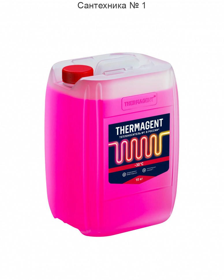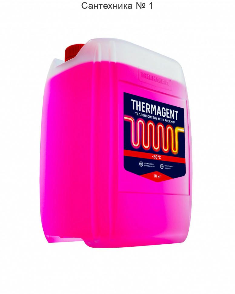 Теплоноситель на основе ЭТИЛЕНГЛИКОЛЯ, КАРБОКСИЛАТНЫЕ (органические) ингибиторы коррозии, срок службы 10 лет, допуски к применению от ведущих производителей отопительного оборудования, разведение не допускается. Теплохладоноситель ?THERMAGENT -30? предназначен для использования в качестве низкозамерзающего теплохладоносителя в закрытых системах отопления, вентиляции и кондиционирования для жилых и производственных зданий, для систем охлаждения производственного оборудования, чиллеров, холодильных агрегатов и т.д., работающих в тяжелых климатических условиях, где в качестве конструкционных материалов используются сталь, чугун, алюминиевые сплавы, медь и её сплавы.