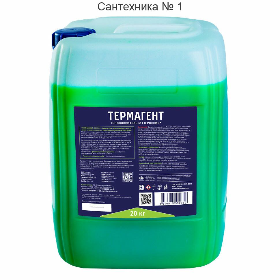 Безопасный теплохладоноситель ?THERMAGENT-20°С ЭКО? выпускается на основе пропиленгликоля высшего сорта, с применением новейшей технологии ?Organic Acid Technology?.