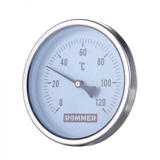 Термометр биметаллический с погружной гильзой Rommer - 1/2* (диаметр корпуса - 80 мм, длина гильзы - 50 мм, шкала 0-120 °С)
