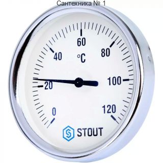 Термометр биметаллический с погружной гильзой Stout (корпус ? 80 мм, гильза 50 мм, резьба с самоуплотнением)
