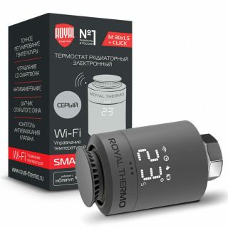Термостат радиаторный электронный ROYAL THERMO Smart Heat с LED дисплеем и регулятором температуры. Точность установки температуры - 1°С. Термостат выполнен из высококачественного пластика и металла. Его назначение - регулировка температуры в комнате, при этом с возможностью управления теплом со смартфона.
