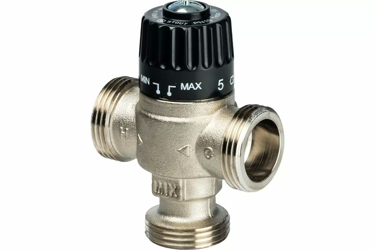 Термостатический смесительный клапан для систем отопления и ГВС 1 1/4* НР Stout центральное смешивание (35-60 °С, KVs 3.5 м3/ч)