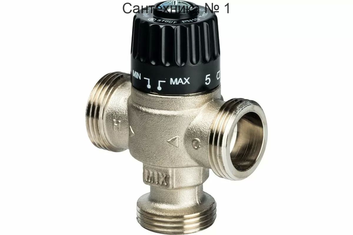 Термостатический смесительный клапан для систем отопления и ГВС 3/4* НР Stout центральное смешивание (35-60 °С, KVs 1.8 м3/ч)