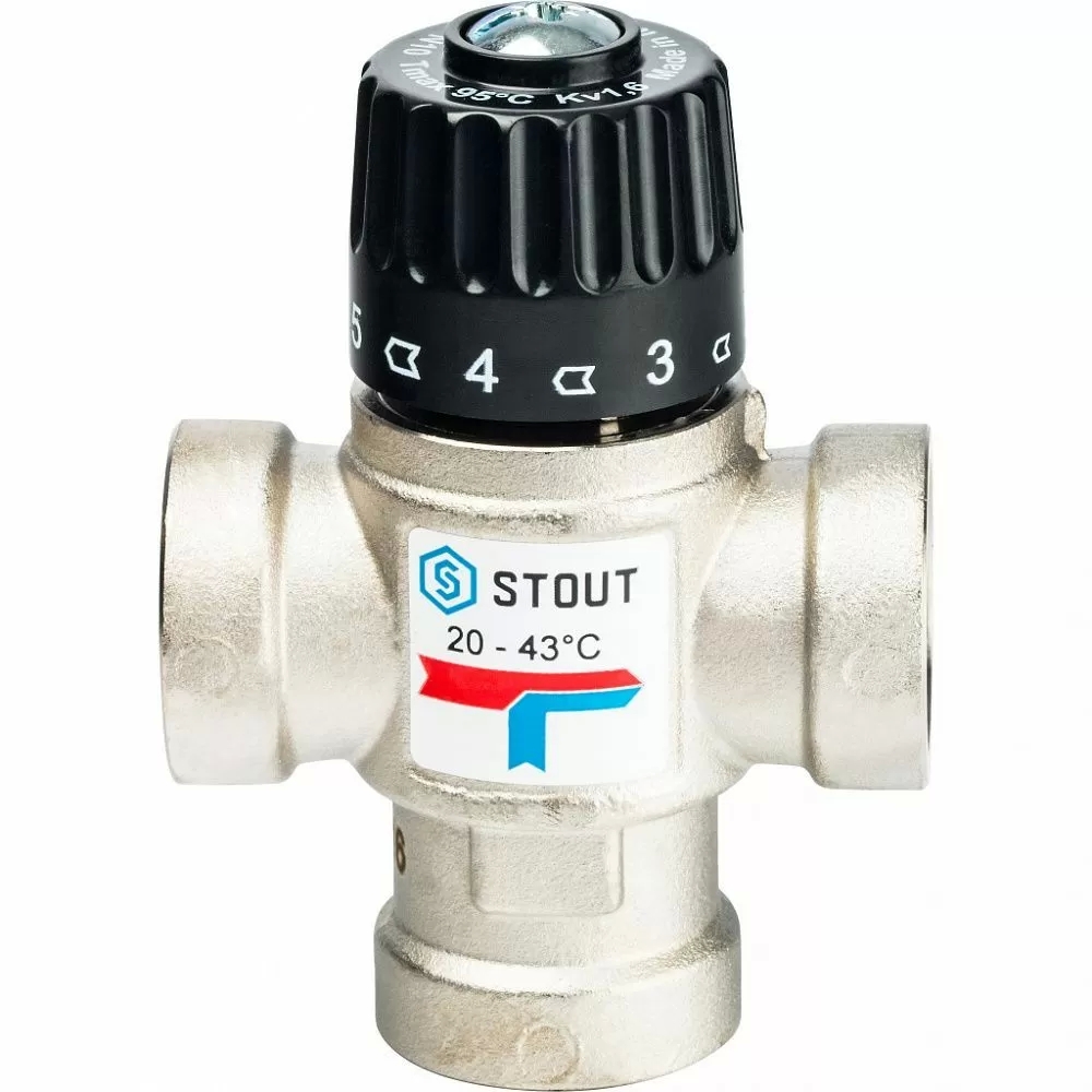 Термостатический смесительный клапан для систем отопления и ГВС 3/4* ВР Stout (20-43 °С, KVs 1.6 м3/ч)