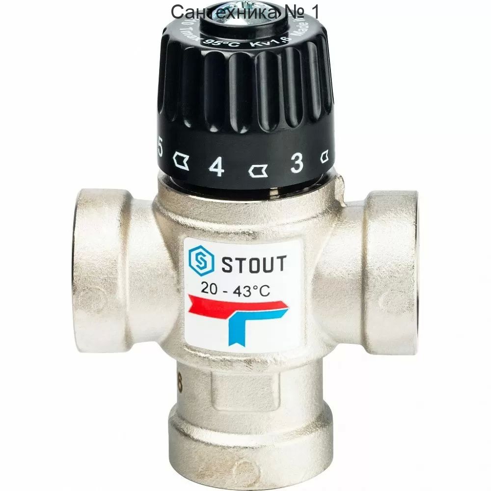 Термостатический смесительный клапан для систем отопления и ГВС 3/4* ВР Stout (35-60 °С, KVs 1.6 м3/ч)