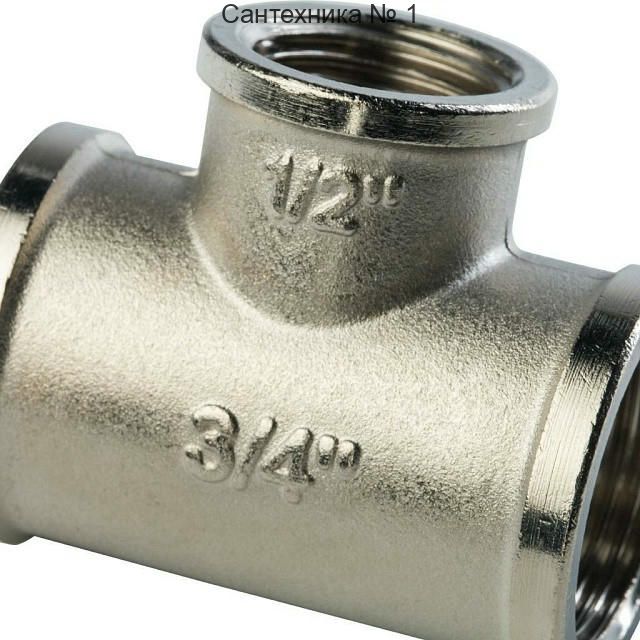 Тройник ВВ переходной 3/4х1/2х3/4, никелированный STOUT