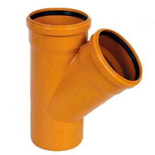 Тройник ПВХ 160х160 мм 45 градусов рыжий предназначен для канализационных труб. Используется для объединения двух труб в одну. С его помощью можно присоединить несколько стояков к центральному канализационному каналу. Тройник ПВХ используется для устройства разветвлений под углом 45°. Конструкция тройника ПВХ двухраструбная. Он поставляется вместе с двухлепестковыми уплотнительными кольцами из резины. Кольцо нужно для более надежного соединения, и обеспечения герметичности.