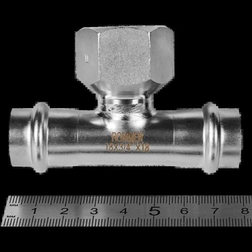 Тройник-переходник ВР 18х3/4 из нержавеющей стали ROMMER