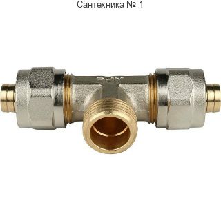 Тройник-переходник с наружной резьбой 16х1/2" для металлопластиковых труб, винтовой STOUT
