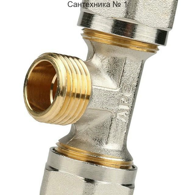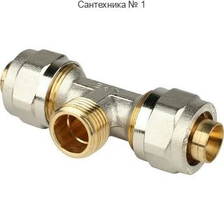 Тройник-переходник с наружной резьбой 20х1/2" для металлопластиковых труб, винтовой STOUT
