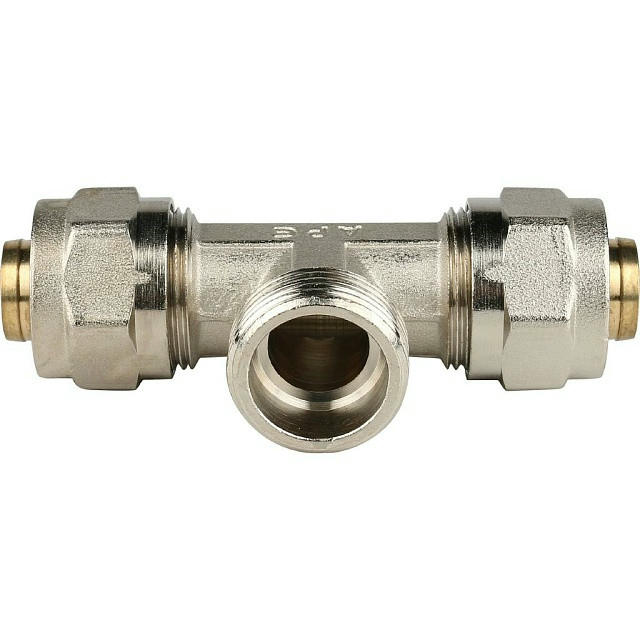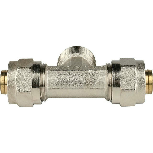 Тройник-переходник с наружной резьбой 20х3/4" для металлопластиковых труб, винтовой STOUT