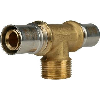 Тройник-переходник с наружной резьбой 20х3/4"х20 для металлопластиковых труб, прессовой STOUT