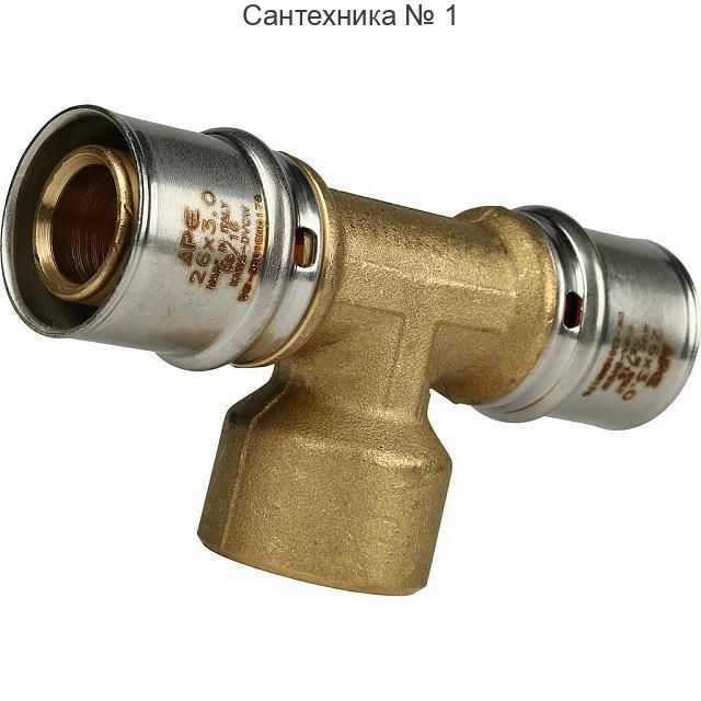 Тройник-переходник с внутренней резьбой 26х3/4"х26 для металлопластиковых труб, прессовой STOUT