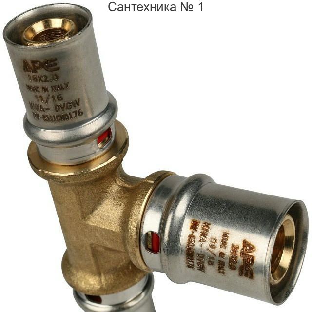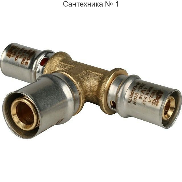Тройник переходной 16х20х16 для металлопластиковых труб, прессовой STOUT