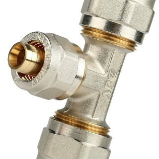 Тройник переходной 20х16х20 для металлопластиковых труб, винтовой STOUT