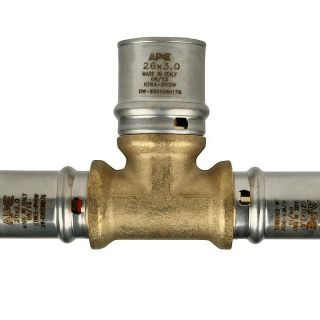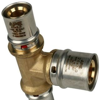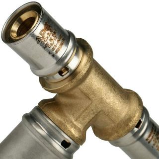 Тройник переходной 20х26х20 для металлопластиковых труб, прессовой STOUT