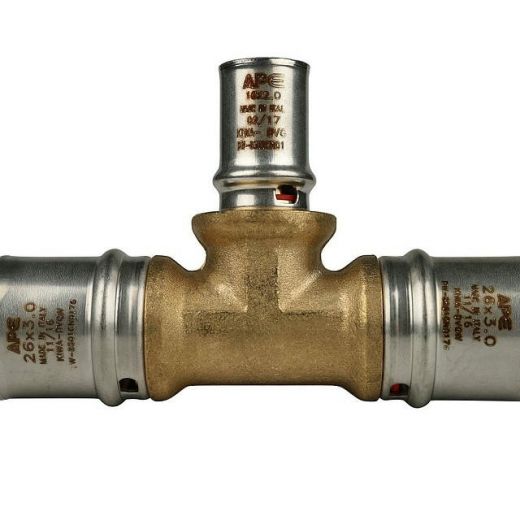 Оцените товар «Тройник переходной 26х16х26 для металлопластиковых труб, прессовой STOUT»