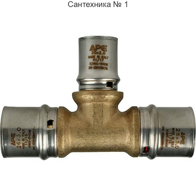 Тройник переходной 26х20х26 для металлопластиковых труб, прессовой STOUT