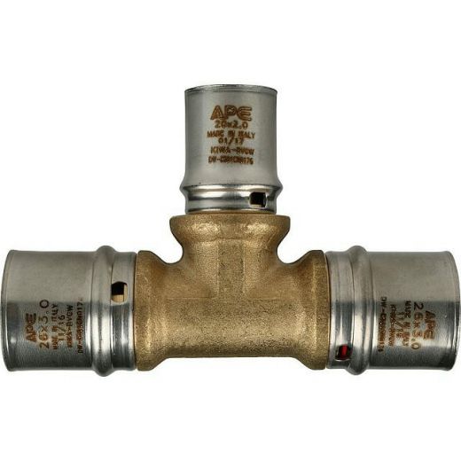 Оцените товар «Тройник переходной 26х20х26 для металлопластиковых труб, прессовой STOUT»