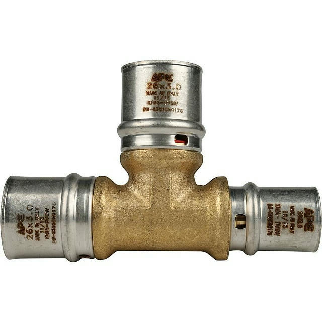Тройник переходной 26х26х20 для металлопластиковых труб, прессовой STOUT