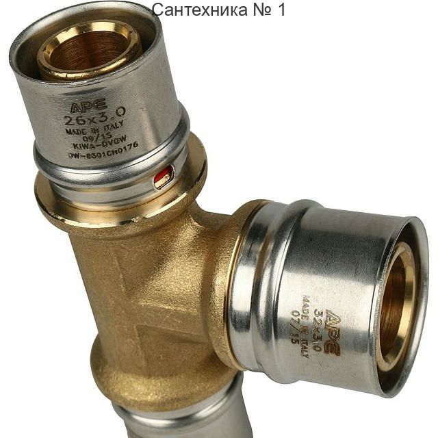 Тройник переходной 26х32х26 для металлопластиковых труб, прессовой STOUT