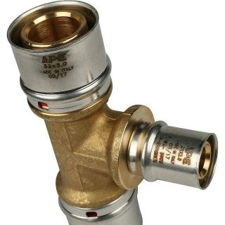 Тройник переходной 32х20х32 для металлопластиковых труб, прессовой STOUT