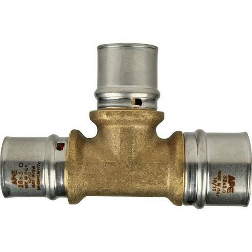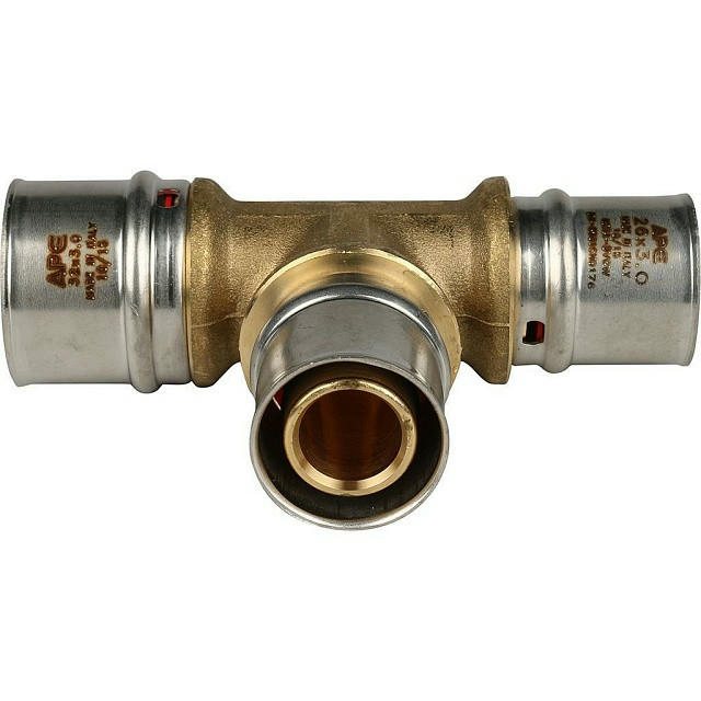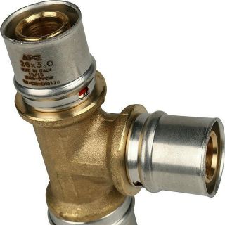 Тройник переходной 32х26х26 для металлопластиковых труб, прессовой STOUT