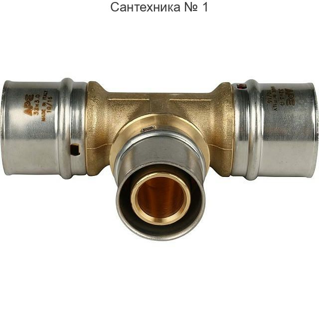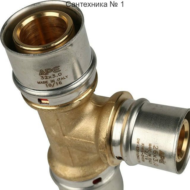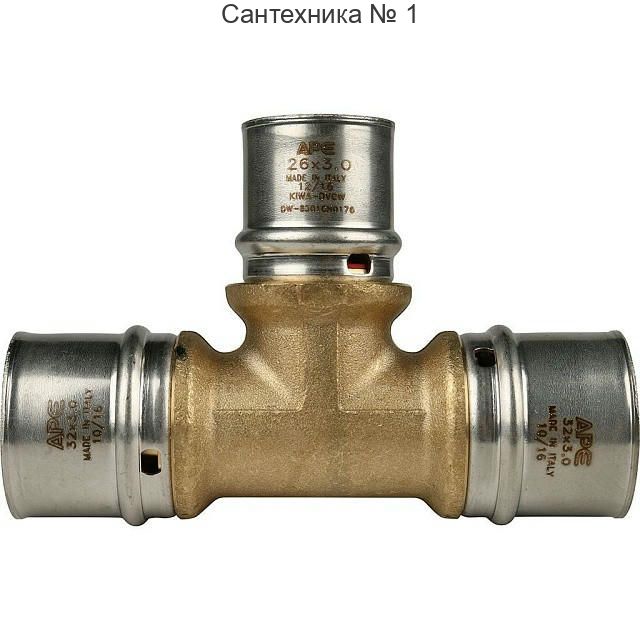 Тройник переходной 32х26х32 для металлопластиковых труб, прессовой STOUT