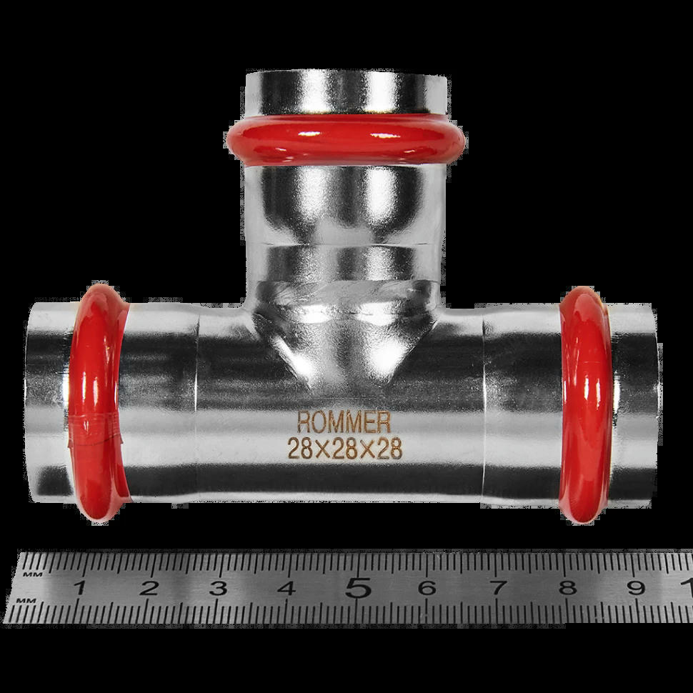 Тройник равнопроходной 28 из нержавеющей стали ROMMER