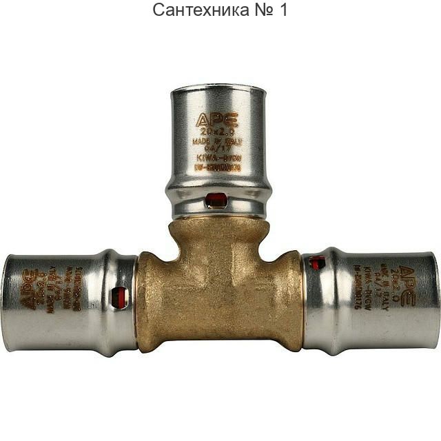 Тройник равнопроходный 20х20х20 для металлопластиковых труб, прессовой STOUT