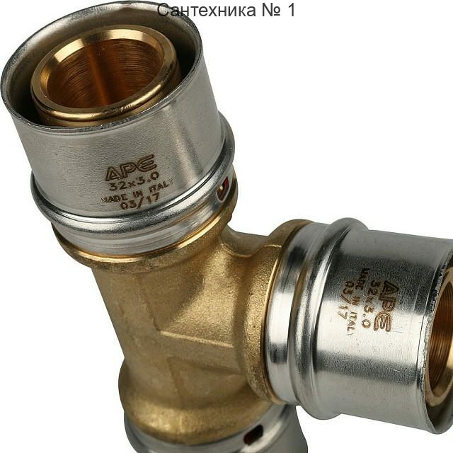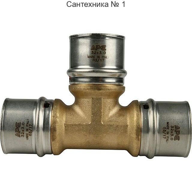 Тройник равнопроходный 32х32х32 для металлопластиковых труб, прессовой STOUT