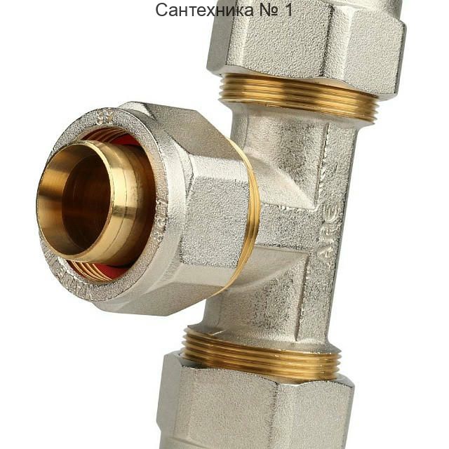 Тройник равнопроходный 32х32х32 для металлопластиковых труб, винтовой STOUT