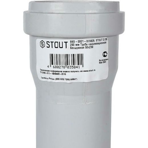 Оцените товар «Труба канализационная бесшумная D 58 L 250 STOUT»