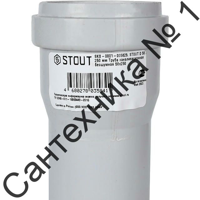 Труба канализационная бесшумная D 58 L 250 STOUT