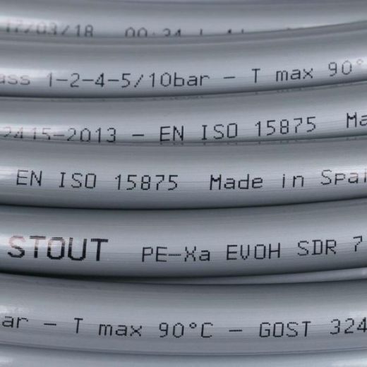 Трубы STOUT из сшитого полиэтилена с барьерным слоем PE-Xa/EVOH ? современный материал в системах отопления и водоснабжения. Трубы STOUT износостойки и неприхотливы. Барьерный слой EVOH препятствует проникновению кислорода в систему трубопровода. Не подвержены действию коррозии. Внутренний слой труб устойчив к истиранию. Идеально гладкая внутренняя поверхность стенки не способствует отложению солей жесткости, накипи, окалины и т.д. Большое значение имеет экологичность труб STOUT, благодаря отсутствию токсичных и физиологически вредных выделений. Возможный шум от работающего оборудования не побеспокоит вас, так как трубы из сшитого полиэтилена (в отличие от металлических) обладают звукопоглощающими свойствами. Удельный вес сшитого полиэтилена ниже стали в 8 раз, поэтому вы также сэкономите затраты и силы при транспортировке и монтаже.