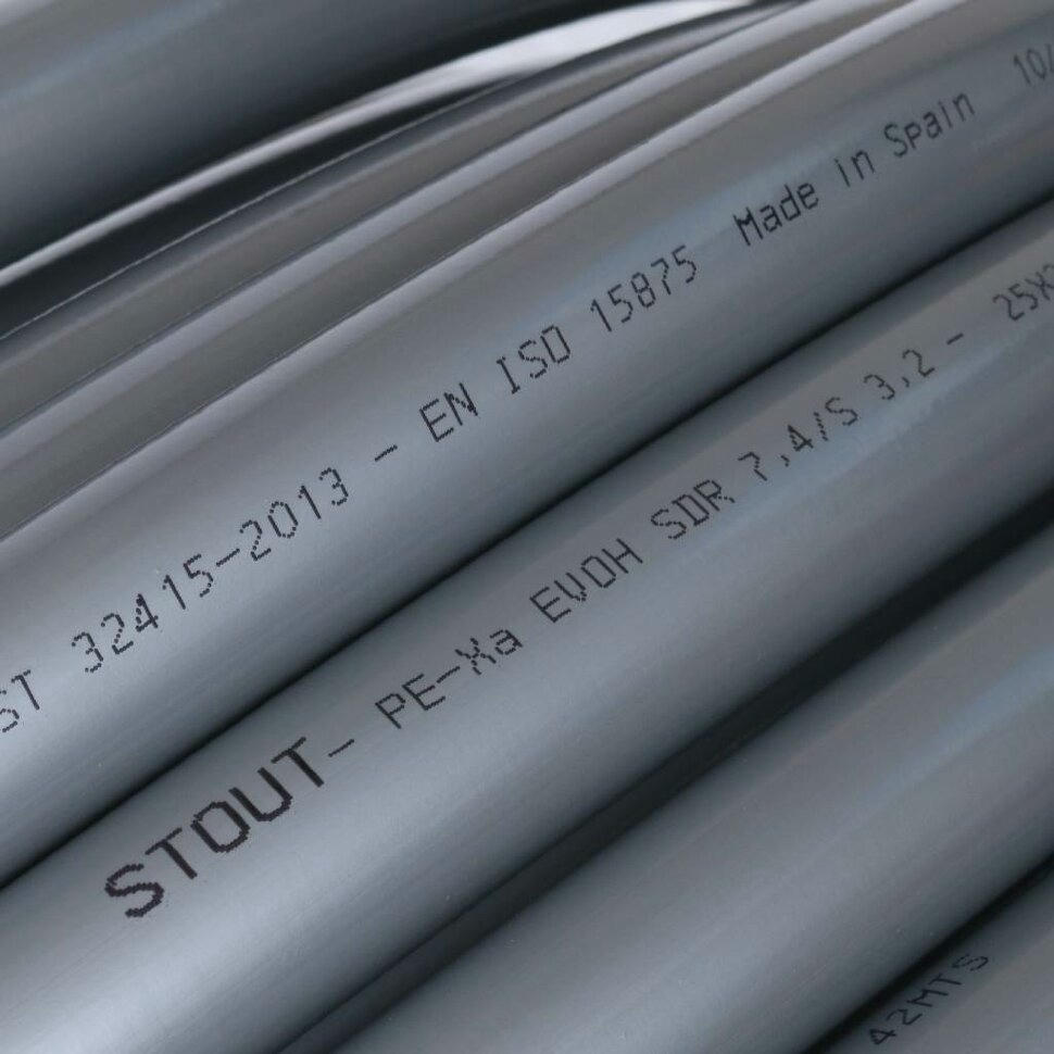 Трубы STOUT из сшитого полиэтилена с барьерным слоем PE-Xa/EVOH ? современный материал в системах отопления и водоснабжения. Трубы STOUT износостойки и неприхотливы. Барьерный слой EVOH препятствует проникновению кислорода в систему трубопровода. Не подвержены действию коррозии. Внутренний слой труб устойчив к истиранию. Идеально гладкая внутренняя поверхность стенки не способствует отложению солей жесткости, накипи, окалины и т.д. Большое значение имеет экологичность труб STOUT, благодаря отсутствию токсичных и физиологически вредных выделений. Возможный шум от работающего оборудования не побеспокоит вас, так как трубы из сшитого полиэтилена (в отличие от металлических) обладают звукопоглощающими свойствами. Удельный вес сшитого полиэтилена ниже стали в 8 раз, поэтому вы также сэкономите затраты и силы при транспортировке и монтаже.