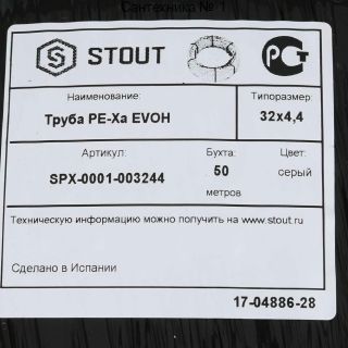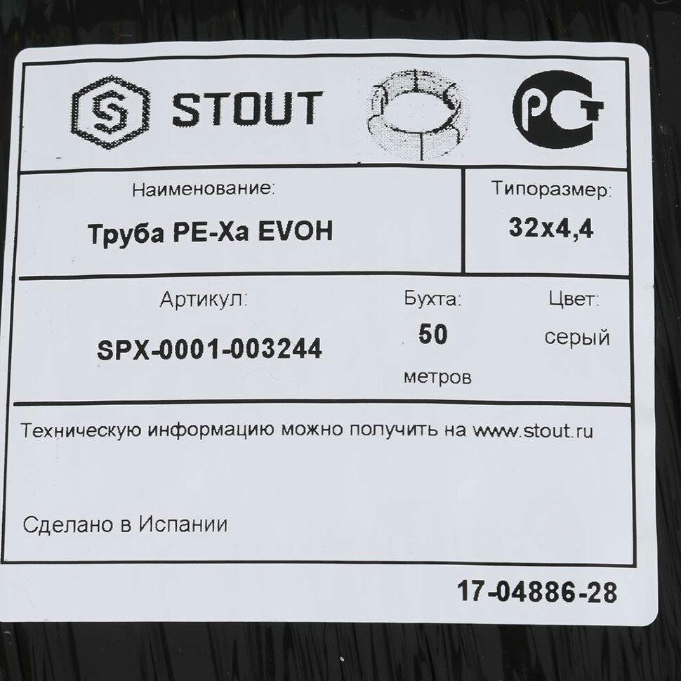 Труба универсальная из сшитого полиэтилена PEх-a 32х4,4, бухта 50 метров STOUT