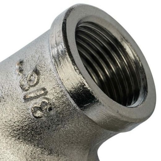 Оцените товар «Угольник НВ 3/8, никелированный STOUT»