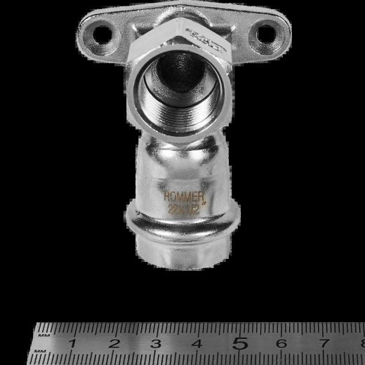 Угольник настенный с креплением ВР 22х1/2 из нержавеющей стали ROMMER