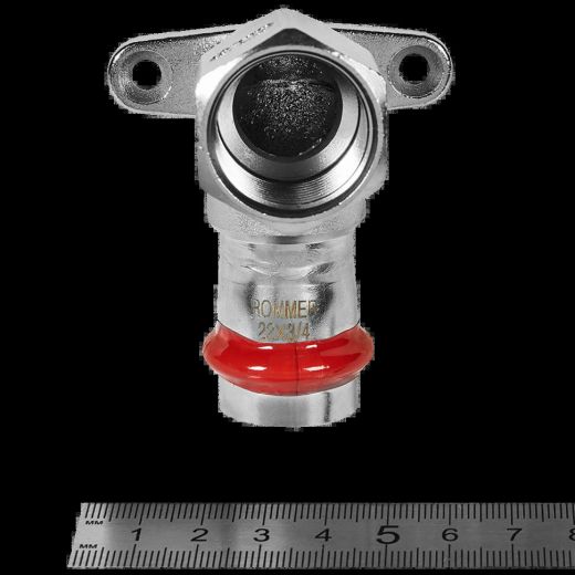Угольник настенный с креплением ВР 22х3/4 из нержавеющей стали ROMMER