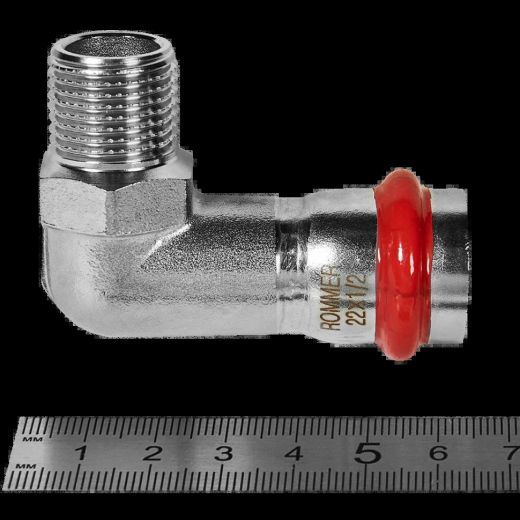 Угольник-переходник НР 22х1/2 из нержавеющей стали ROMMER