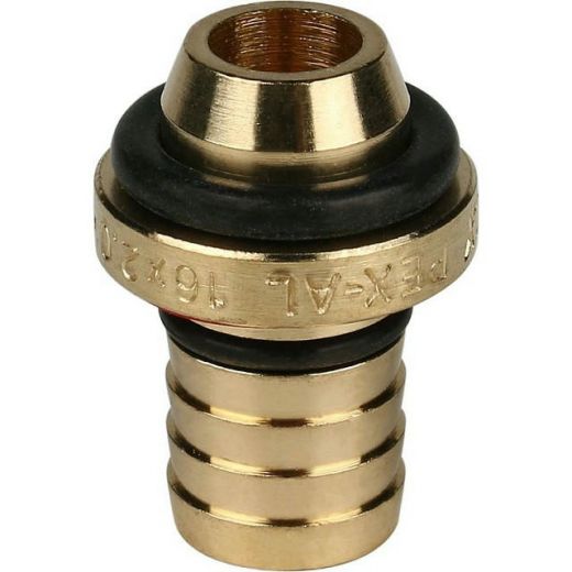 Оцените товар «Угольник-переходник с наружной резьбой 16х1/2" для металлопластиковых труб, винтовой STOUT»