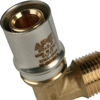 Угольник-переходник с наружной резьбой 20х1/2" для металлопластиковых труб, прессовой STOUT