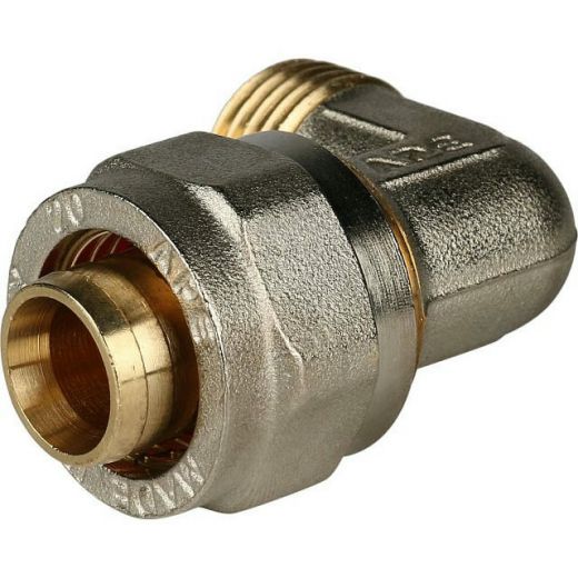 Оцените товар «Угольник-переходник с наружной резьбой 20х1/2" для металлопластиковых труб, винтовой STOUT»