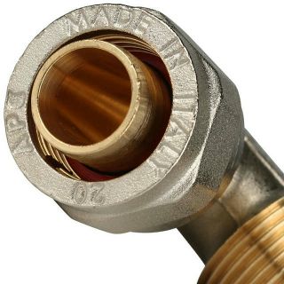 Угольник-переходник с наружной резьбой 20х3/4" для металлопластиковых труб, винтовой STOUT