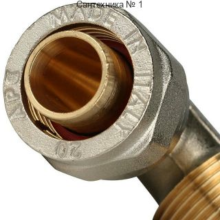 Угольник-переходник с наружной резьбой 20х3/4" для металлопластиковых труб, винтовой STOUT